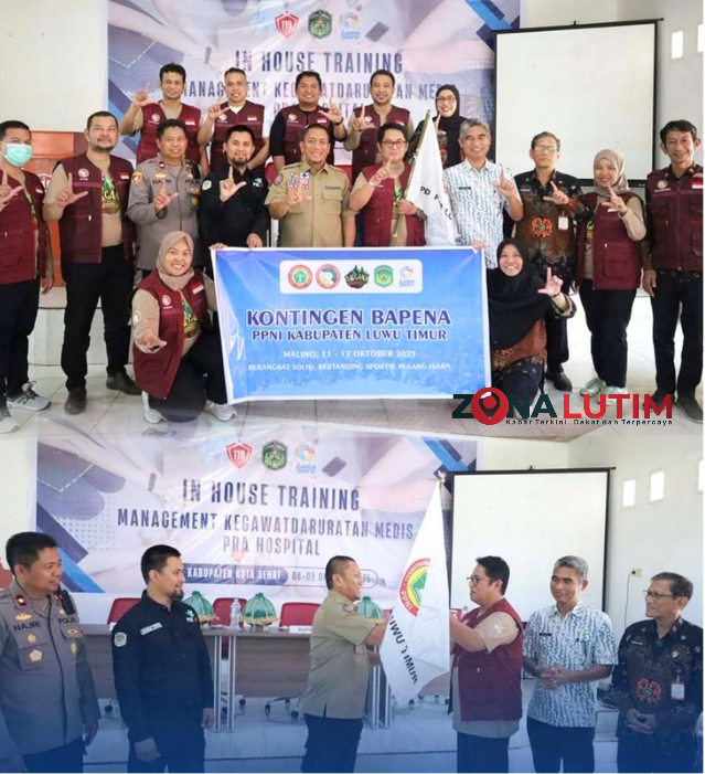Lutim, Zonalutim.com – Bupati Luwu Timur, Irwan Bachri Syam, melepas secara resmi Tim Jambore Tanggap Bencana Pusat yang akan mengikuti kegiatan di Malino, Kabupaten Gowa, pada 11–12 Oktober 2025, sekaligus menutup Pelatihan Petugas Public Safety Center (PSC) 119, yang berlangsung di Aula KKS Malili, Kamis (09/10/2025).